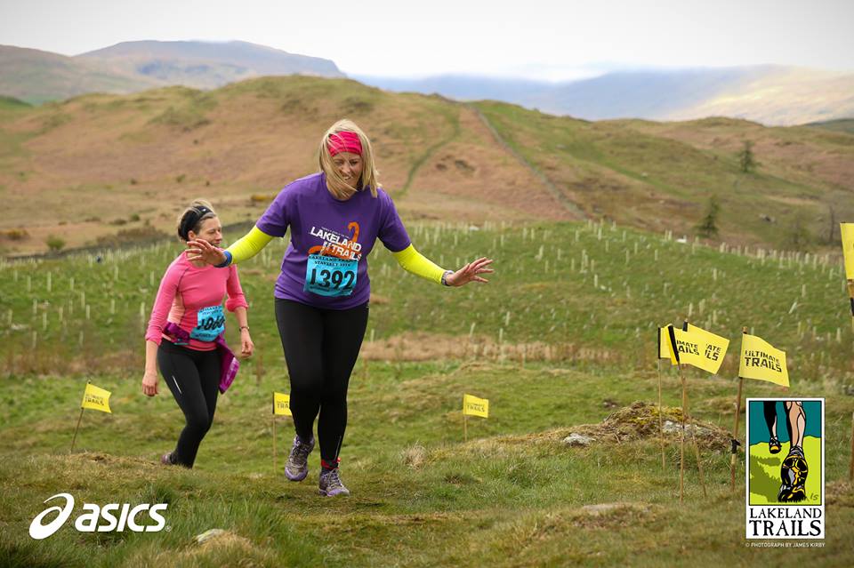 Mrs Sticks tops out on Reston Scar (aka The Sting in the Tail) above Staveley. I was with the kids at the start/finish, not in running gear! (photo courtesy of James Kirby @jumpyjames)