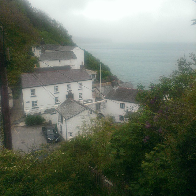 The sensational fishing village of Clovelly, (lunch break on the quay) way below. All the way down, alllllll the way back up again.