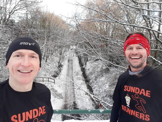 In fact, the only disappointing part of January running was the cancellation of Mike’s 50th birthday run. He had a grand run plan lined up for The Sundae Runners which included a finish at his house for coffee and copious cakes but, within days of his birthday, the National lockdown was announced and The Sundae Runners were no more – for now! His lovely wife, Catherine, had even had t-shirts specially printed for the occasion which were to be a surprise for Mike. They were hastily delivered instead. I was the lucky one who lives closest to Mike so, come the big day, I was fortunate enough to be his ‘You can meet up for exercise with one other person’ person! We donned the t-shirt anyway and had a memorable 17 miles in stunning conditions. The coffee, cake and full group run will hopefully be re-booked in the not too distant future! Happy birthday, Coach Harris!