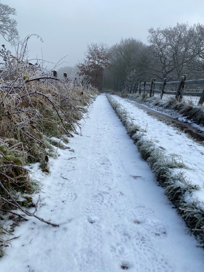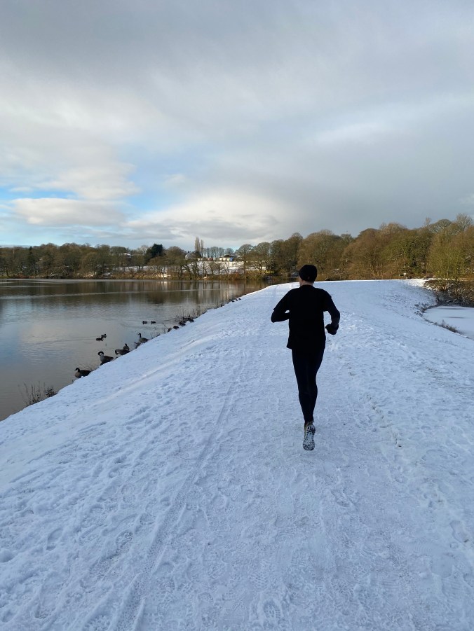 The year started with a surprise dose of real Winter conditions! I think the snow appeared overnight just before New Year’s Eve. Not loads, but enough for us to get the family sledge out for the first time in NINE YEARS! (I’m not even kidding! Hannah was in Reception and Nancy [9] has never even seen the thing!) Every run between December 28th and January 10th was a snow run of some description. The temperature barely got above freezing the entire time, so every fresh dusting of snow, and that’s all it ever was, stuck around. The pavements were pretty treacherous really, but you could run if you wore trail shoes and made a point of running as slowly and gently as possible. The trails were generally safer, although I did one run from my work thinking the canal towpath would be clear, only to find the towpath a glaze of sheet black ice where it had been trodden down by days and days of walkers. There were so many beautiful runs with clear blue skies and glistening snow that it really was a pleasure to be out. Winter at it’s best truly is the finest of seasons.