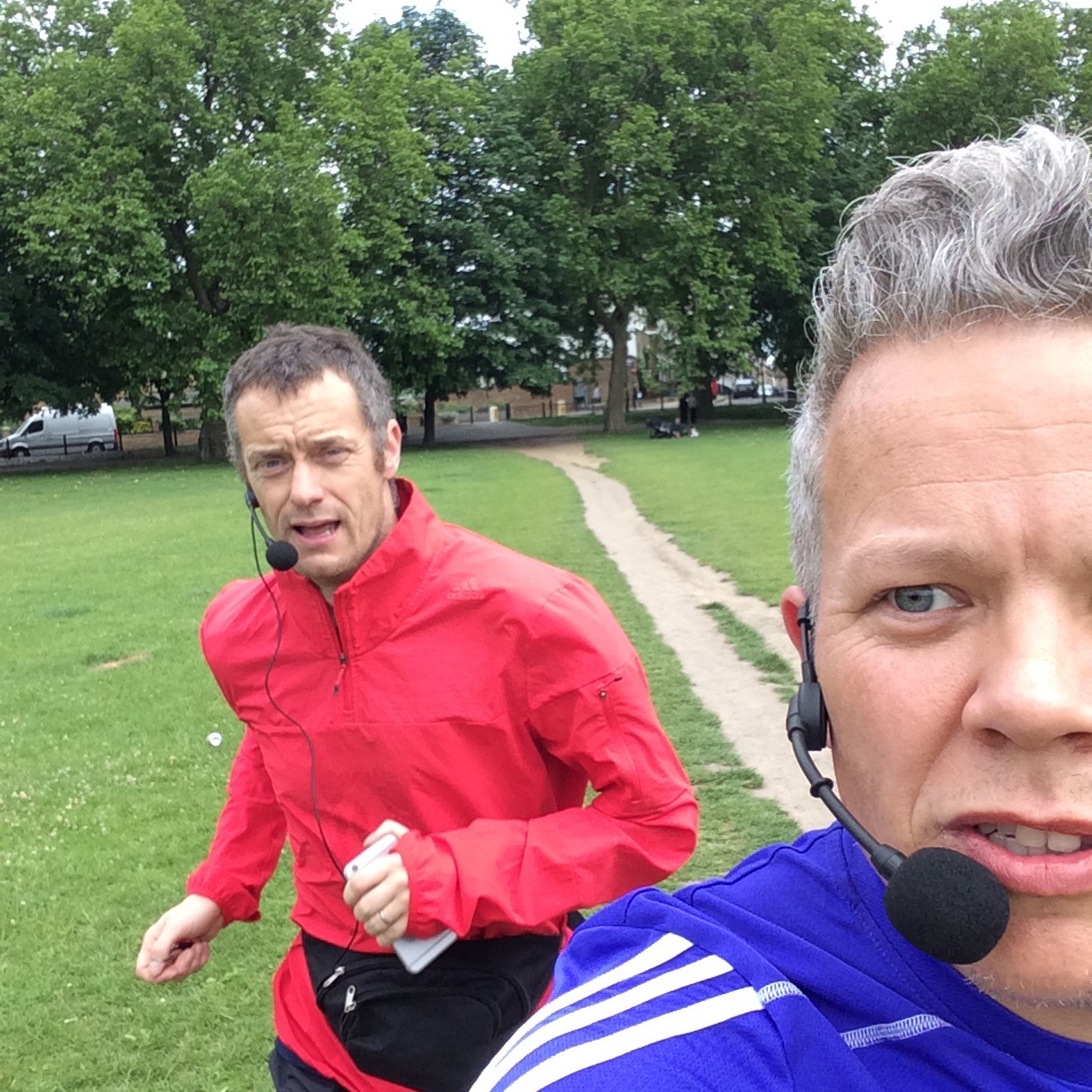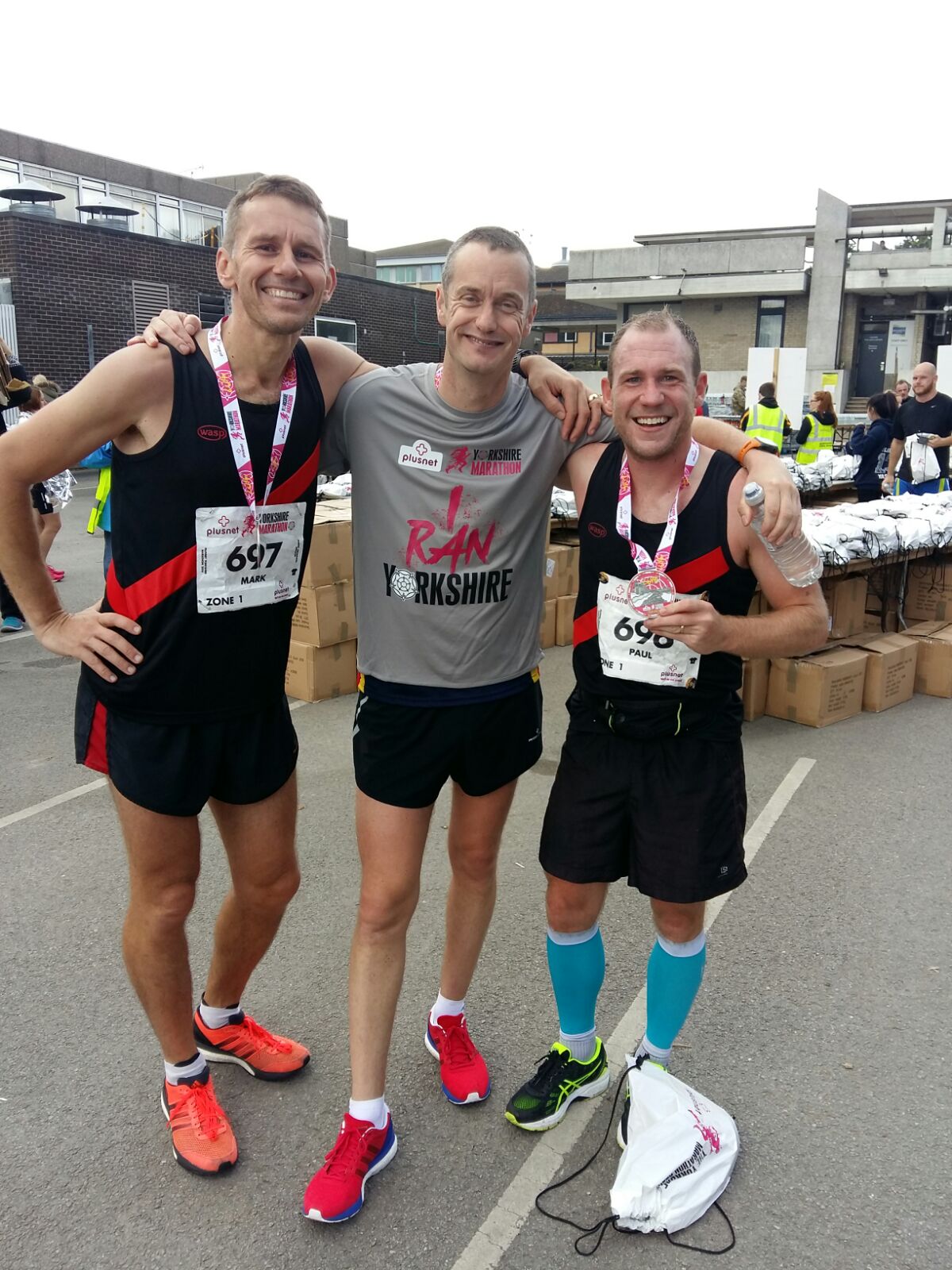 Left: Paul Tonkinson & Rob Deering recording Running Commentary. Right: myself, Paul Tonkinson and fellow Harrier Paul Platt; York 2017.