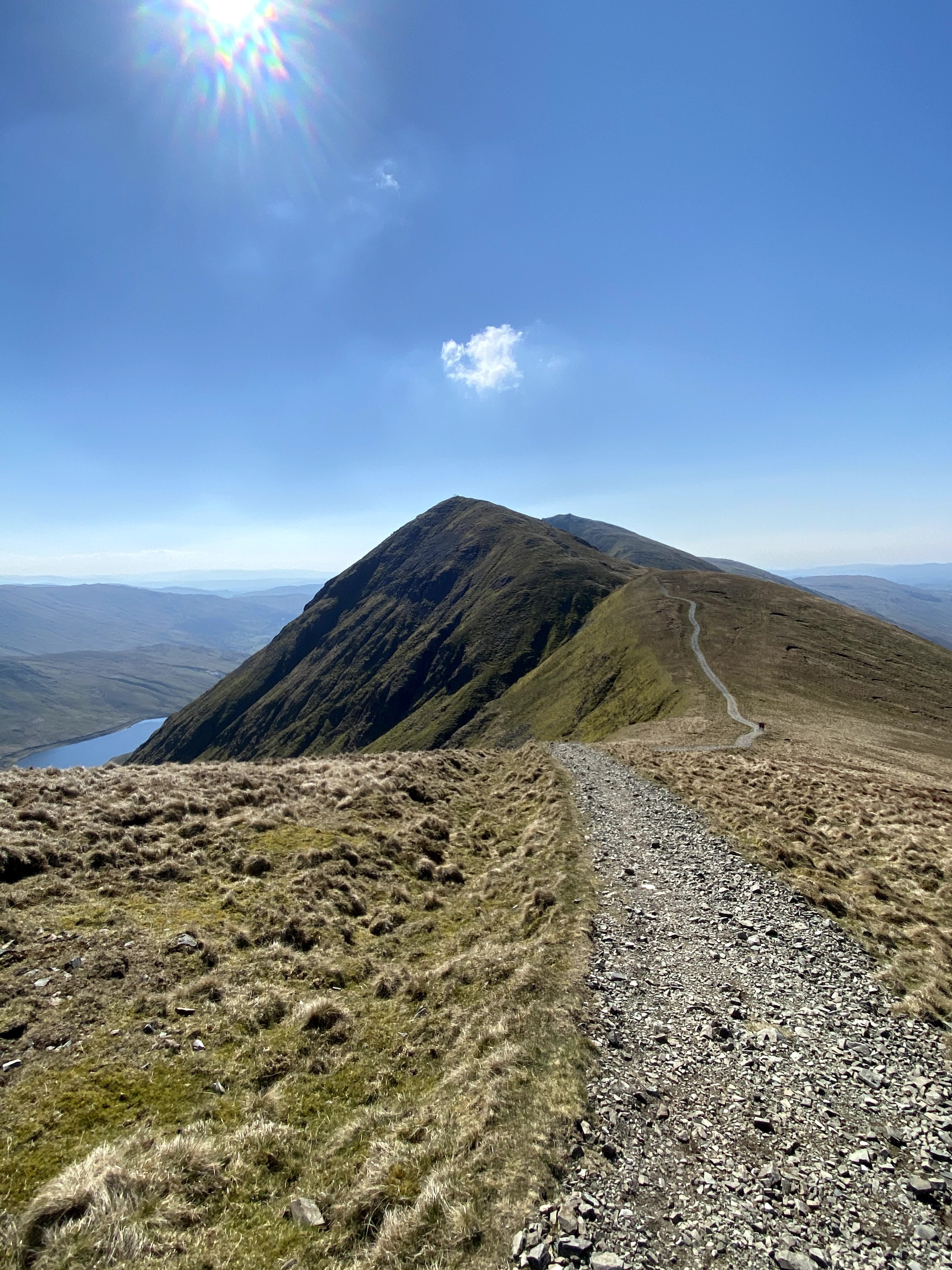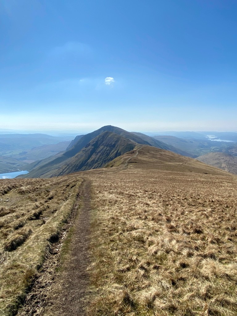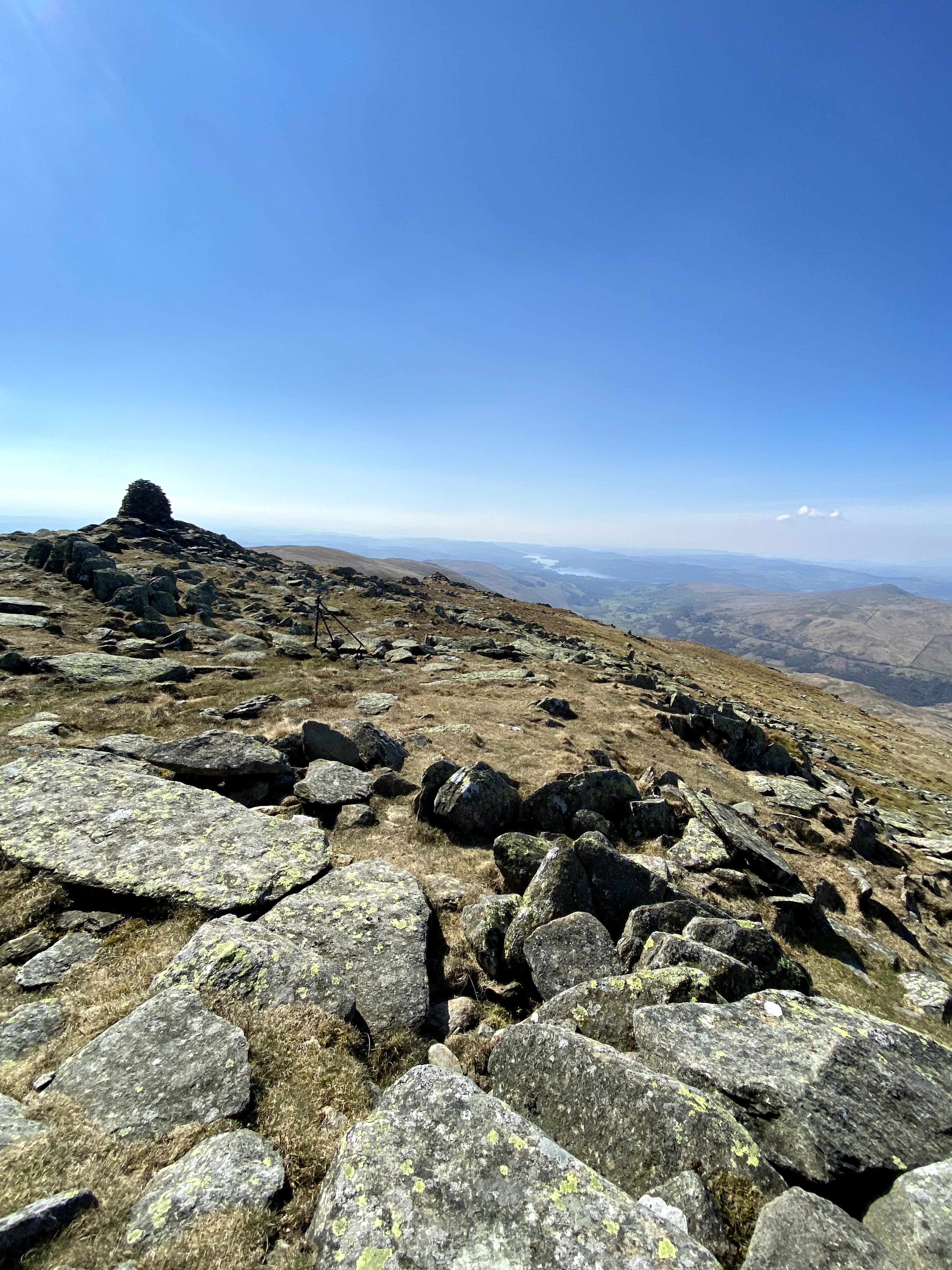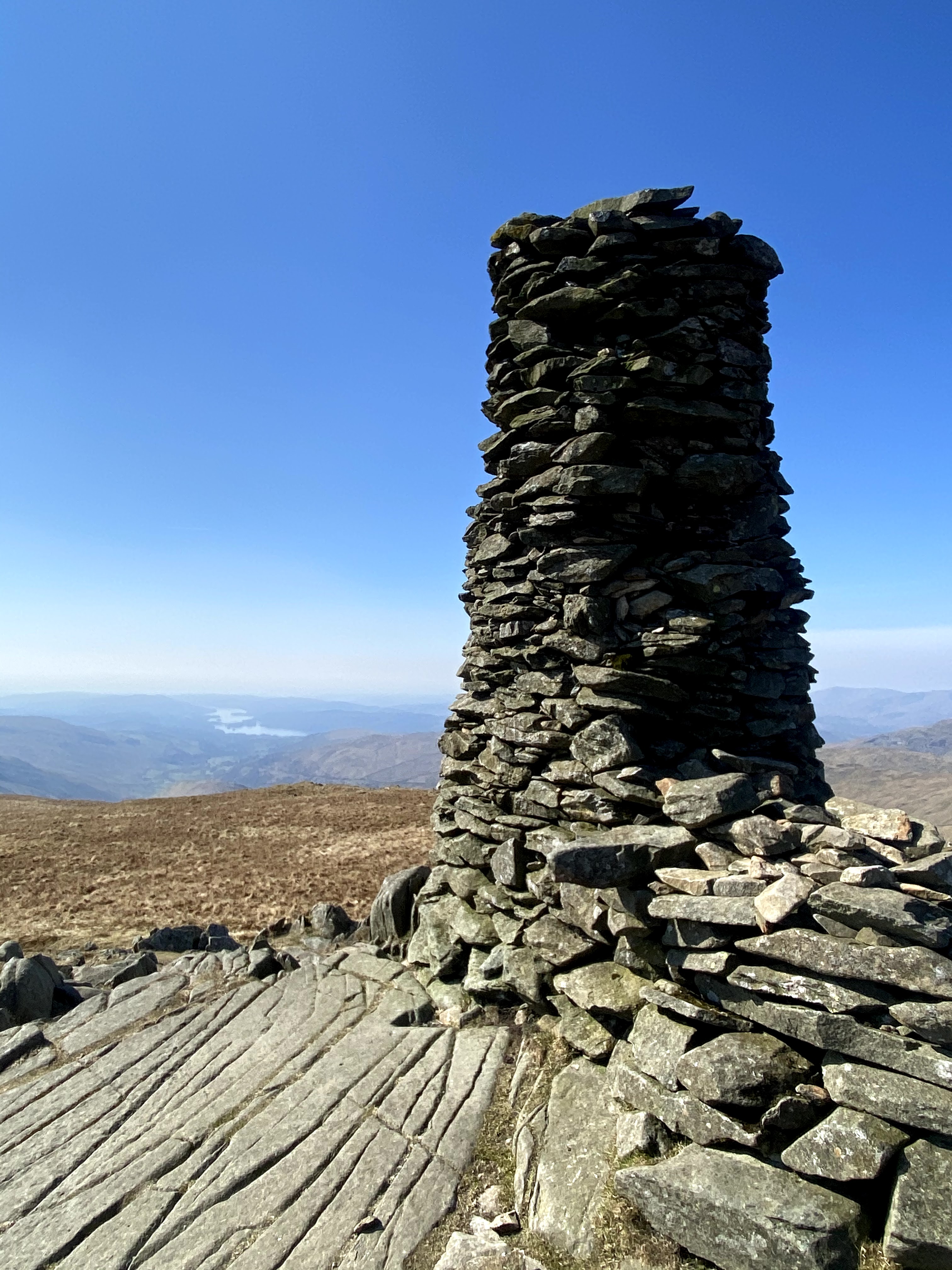 This pride and boastfulness was quickly quashed within 15 minutes. Having climbed over Frostwick and then up onto Ill Bell, I decided to have a proper sit down with a snack and a drink and soak up the last big view before descending back towards sea level. Already in situ on the summit were an elderly couple who I had also passed earlier in the day on the Kentmere descent. They asked about my route and we chatted about their visit – they owned a second house in Kendal but obviously hadn’t been allowed to visit it much in the last 15 months. I told them my last Lakes visit was November 2019. Wow, they said, and then asked;