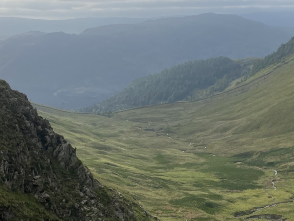 In the dark up here, what you are listening for is the stream away to your right – the closer the rushing water sounds, the closer you are to the top. The problem this year was you couldn’t hear the water for the wind! Still, I was up there quicker than I thought I should be (the time for the leg would indicate that I did climb a lot quicker than usual!) and was soon staring into the valley below – the last climb of Lakeland in the bag!