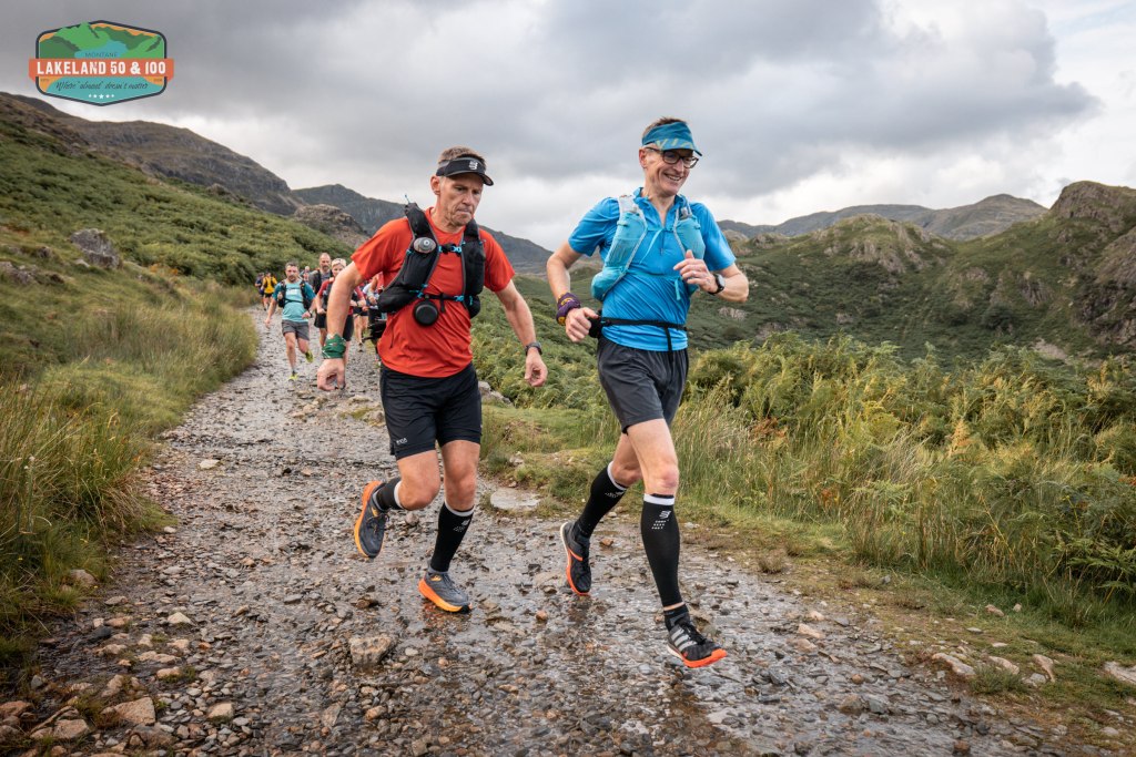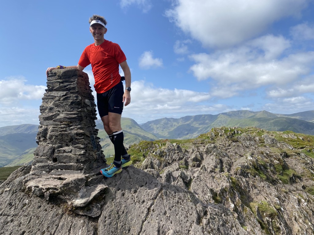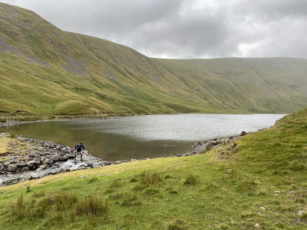 The main effect of the really poor weather in the Lakes in the build-up to the race was that paths that had been hard baked for three months were now much softer and, the main problem, bogs and streams that had been dry a month before were now wet and over-flowing! This means that you know your feet are going to be gently soaked for the entirety of the race, which creates the obvious problem of soft feet becoming rubbed or tender or blistered – or worse. I would love to do this race in dry conditions underfoot one year (I missed the dry, hot race of 2021) and our first taste of things to come were the bogs at Grassguards. To be honest, it wasn’t quite as bad as I thought it would be; but it was bad enough that there was no chance of keeping your feet dry, and so began the gentle disintegration of the feet that would slow me down a little towards the end of the race. On the plus side, my new Speedgoats hadn’t disintegrated!