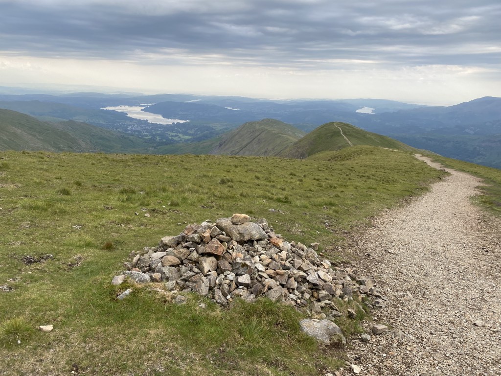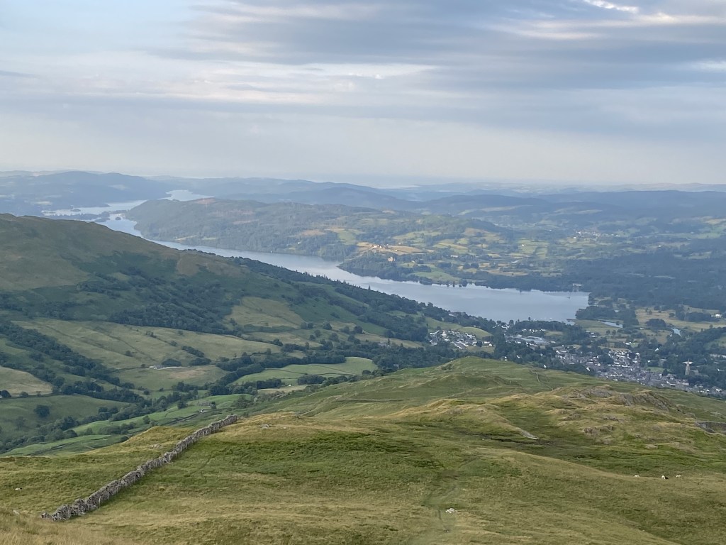 My final Lakeland visit was the week after, just three weeks before race day, when Leanne and I managed a child-free weekend in (for once) a posh hotel in Ambleside! Leanne kindly said I could run as much as I wanted but it was sort of taper time by then and I certainly wasn’t going to waste a child-free weekend just running when there was rare stress-free eating and drinking to do! So I got up at 5am on Saturday morning and went up Red Screes before linking over to Fairfield and coming back down into Ambleside, all before posh hotel breakfast! Then, we enjoyed a nice day walking over to The Britannia Inn at Chapel Stile to cheer on Lakeland Trails Ultra runners – although it did feel very strange to be one of the people enjoying an afternoon pint in the beer garden while ultra runners streamed past! (I always wondered what that would feel like!). I also nipped out before breakfast on Sunday and did a little Grasmere/Loughrigg loop.