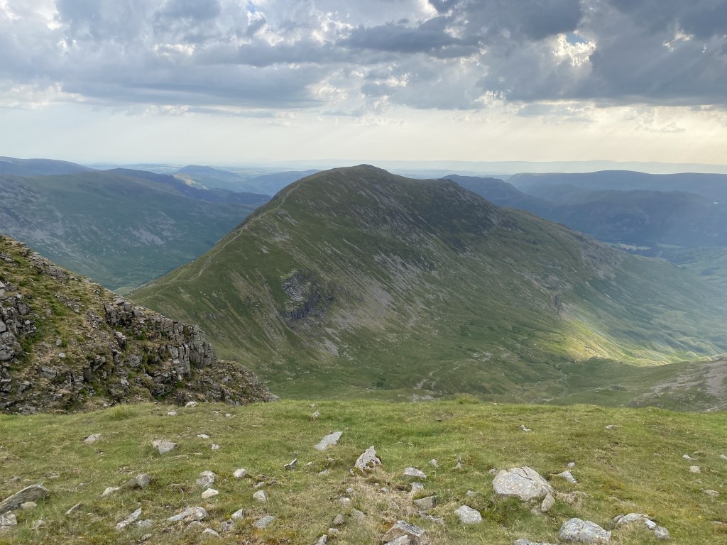 At this point, I think it is worth returning to the subject of weather! The conditions as we climbed were absolutely perfect for ultra-running; it wasn’t a hot day, there was decent cloud cover and, also, a stiff breeze which, it turned out, would be at our backs for the whole first half of the race. Perfect. (We won’t mention the fact that it was then in our faces for the last half of the race!) As I keep saying, my race mantra from the get-go (I don’t do mantras, but you’ll get my drift) is to think positively throughout and not let any negativity seep in – ESPECIALLY about weather! We are in the chuffing Lake District, for goodness sake! I have done this event in 2018, 2019 and 2022 and, each time, experienced initial heat and then significant, prolonged rain on every occasion. This year, the weather throughout the race was about as good as you could ever wish for. (Although I have seen the video footage to prove that I dodged one major rainstorm in the Buttermere area by being through there quite quickly.) Saturday was never hot but often very pleasant. Yes, there were showers, some heavy, but they went away and, yes, by Saturday tea-time the wind was very strong – but I’d take that over still, sticky and humid. My main take-away from my 2018 failure has always been to just ignore weather completely – be dressed for it, take the relevant kit to deal with it, and then get on with it. (Lecture over!)