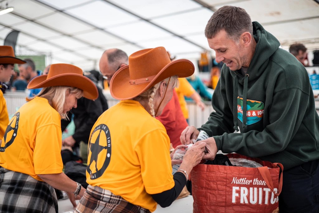 I parked up in the village pay-and-display car park and walked round the corner to – gridlock! It’s funny how, when you are in a car in the queue to get on the campsite at 9am, you don’t notice how many other people are doing the same! There were stationary cars everywhere, including some irate locals who just wanted to drive through the village as normal and could not move an inch! I suppose there is no way around this and, to be fair, as soon as the campsite gates opened, the queue was gone in minutes. But it was my first reminder of how nice it was not to be using up energy worrying about where we could pitch the tent, physically having to pitch a tent, worry if the family were all ok – I just sauntered into the marque with my shopping bag full of essential kit and registered by 9.15! I even got on an official photograph!