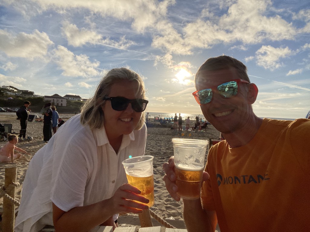 As usual, we have been on holiday camping in Cornwall in-between the race and actually writing it up. We had an absolutely lovely, relaxing time including, as the pictures below show, taking some Endurance Store, Montane & Lakeland 100 merch on tour, and Leanne and I sneaking off from the kids on the beach to enjoy a well earned drink!